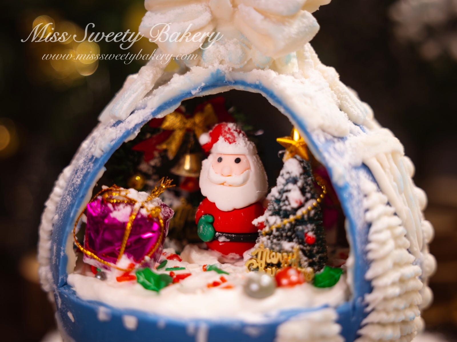 聖誕球蛋糕外殼、內裏蛋糕、糖珠及糖條均可食用
