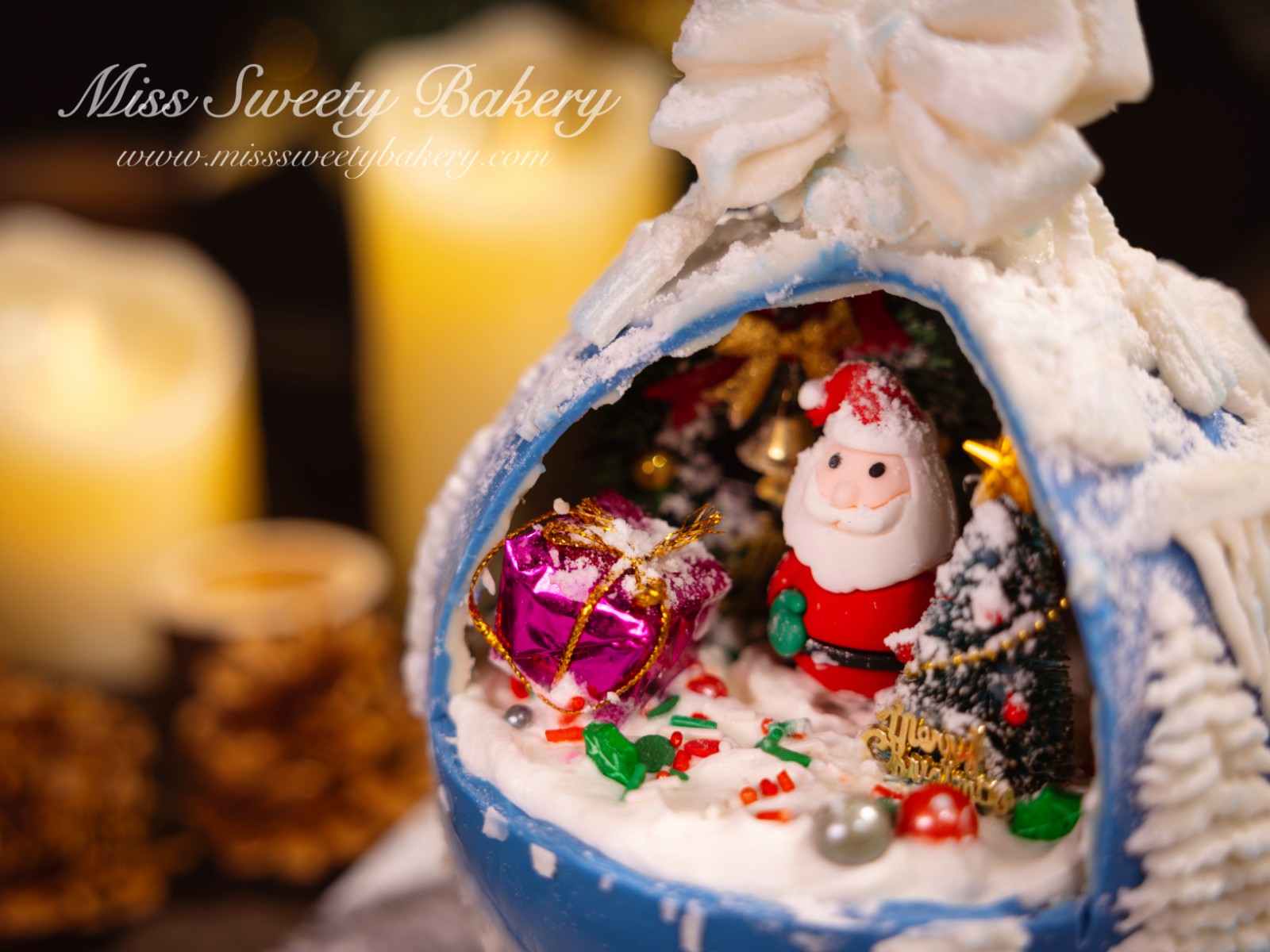 聖誕球蛋糕外殼、內裏蛋糕、糖珠及糖條均可食用